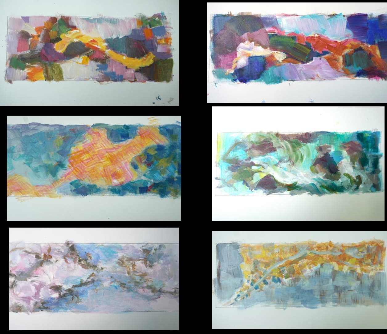 The project began with discussions on color and compositions. I made over 12 studies for this commission.